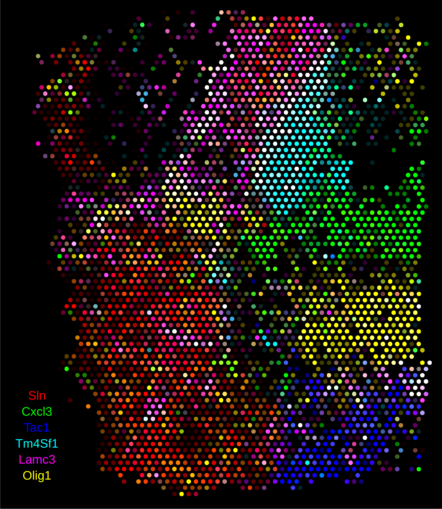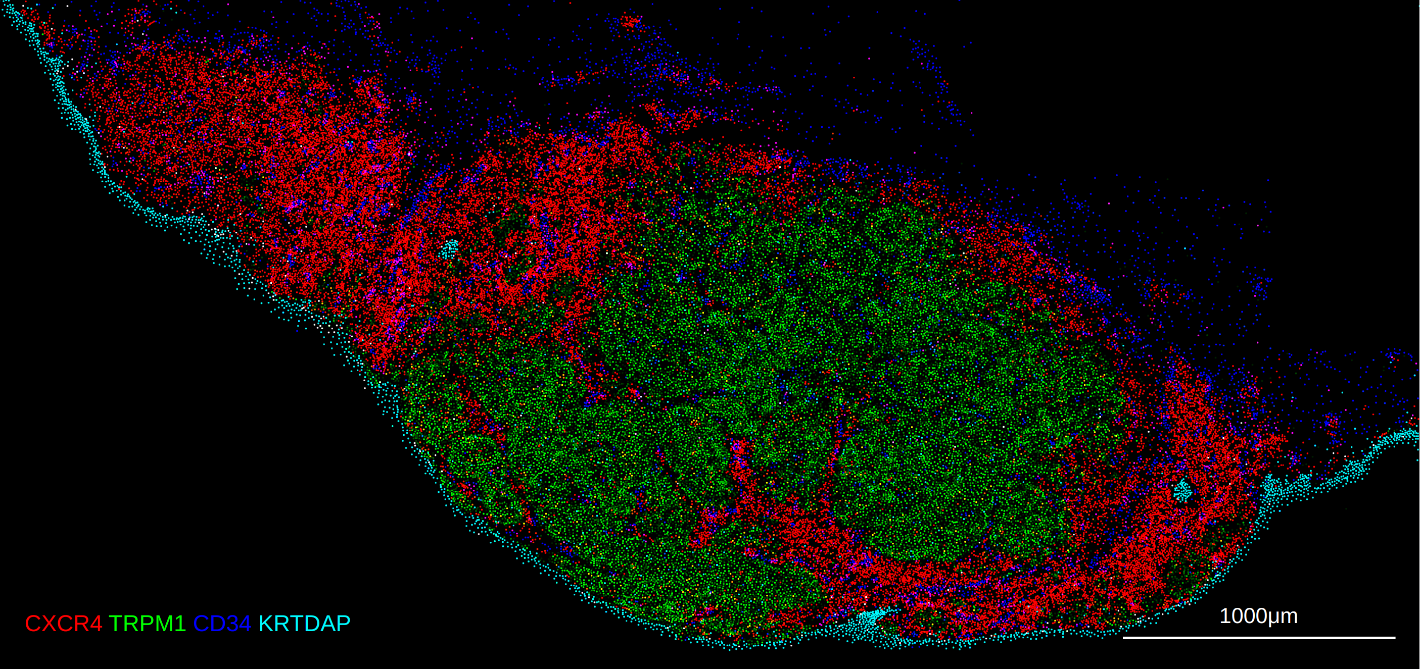 The non spot-base technologies above support custom user marker sizes in rakaia. This means that the marker can be visually enlarged or minimized down to a default size of 1 pixel in the viewer. This allows the expression to appear more granular/minimal or more extensive/uniform throughout the ROI as the user desires.