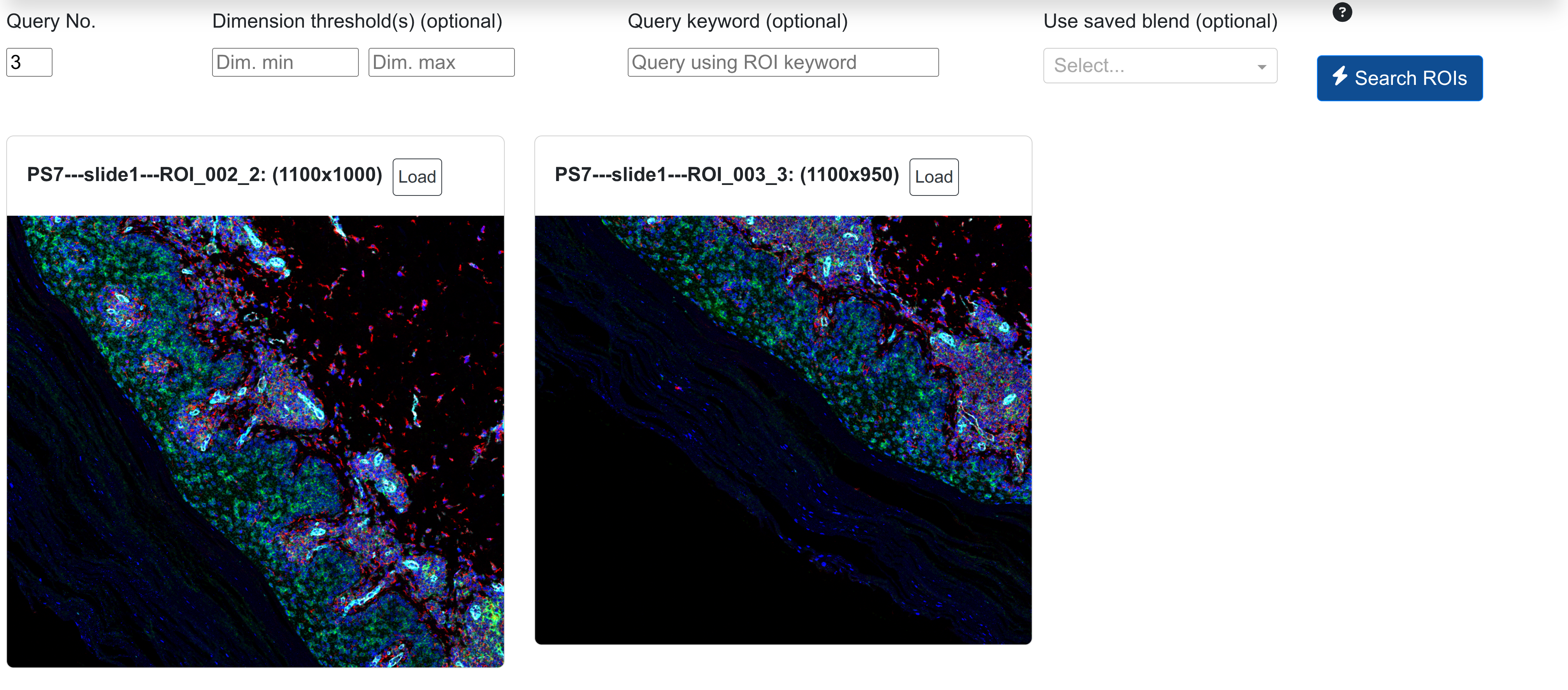 Blended ROIs can also be added from the dataset gallery to the current stitch selection. This requires that the ROIs be derived from an MCD files as above, otherwise, it won't be able to auto-detect the proper coordinate position for insertion in bulk.